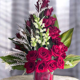 Price: $195.00 Beautiful Big Display of roses in Ceramic vase Product Tags: Best seller Same-day Delivery